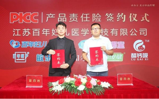 近日,江苏百年妇儿医学科技有限公司与中国人民财产保险股份有限公司(以下简称“中国人保”)正式签约产品责任险,百年妇儿旗下全系列产品成功获得中国人保的产品责任险承保,此举标志着百年妇儿医学在保障产品质量、维护消费者权益方面迈出了坚实的一步。此次签约不仅是对公司产品的肯定,更体现了百年妇儿始终秉持“引领儿童特殊食品,重塑健康生活”的企业使命。